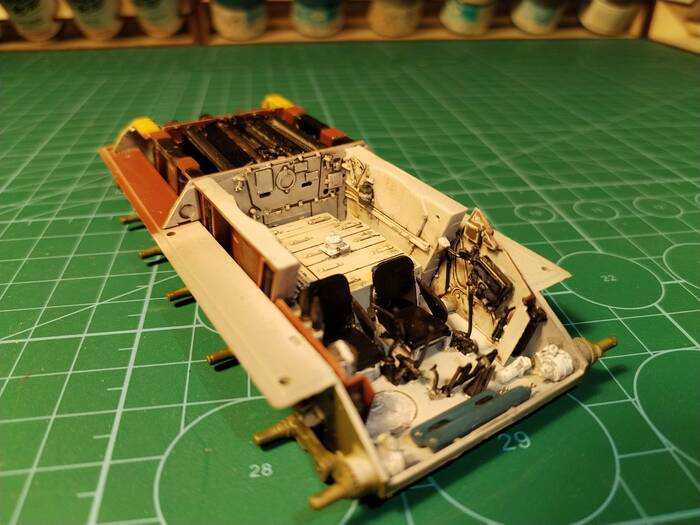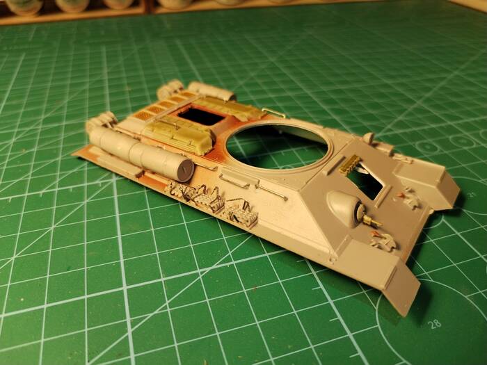 И сразу ошибка - не имея опыта - раскурочил модель, срезал крылья, надгусеничные полки. Посмотрел на результат (криво) - и перегорел. С тех пор не раз возвращался, делал понемногу, снова откладывал. И вот решил все таки допилить.