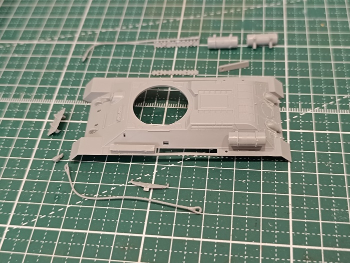 Начал новую стройку, пока Шерман и Т-70б на разных этапах покраски. Попилить/пошпатлевать приходится. Всё таки модель производится уже 10 лет и внушительным тиражом. Есть и сдвиги по половинам деталей, и облой. А ещё условная "сборка без клея" автоматом делает некоторые соединения с серьёзными зазорами.