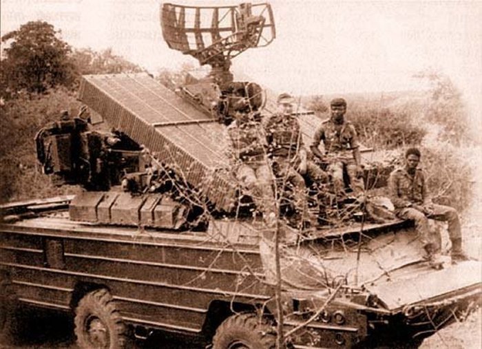Ангольская ЗРК «Оса» 9К33 с боевым расчётом на броне