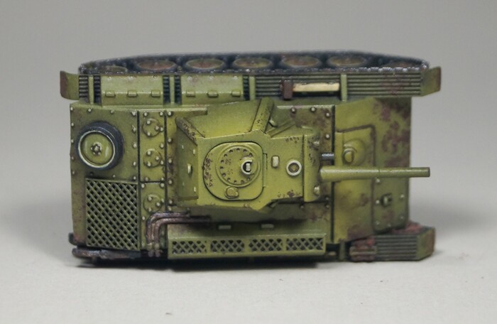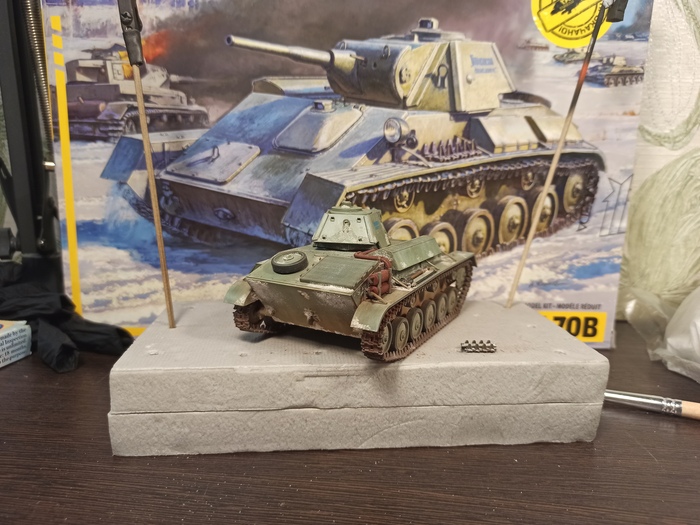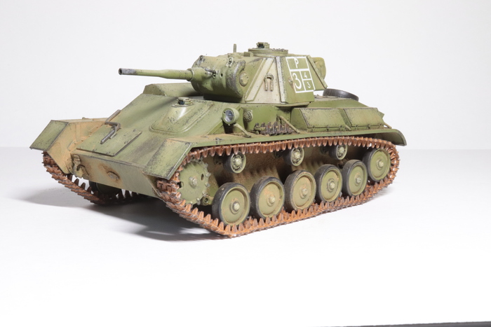 Окончательная сборка (за исключением фонаря) и работа с пигментами. Замучался натягивать почти собранные гусеницы на собранный танк. Обломал крепления ведущих шестерён и "ленивцев". Пришлось садить на суперклей.