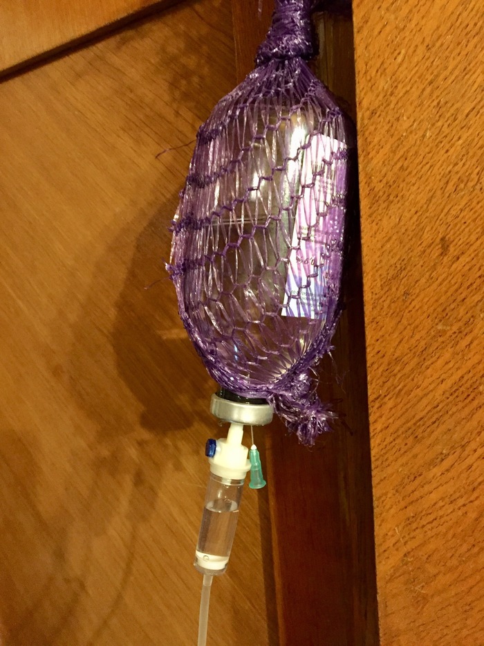 Всем привет от Белки. Пришли анализы крови. Все более менее. Анализы нетипичны для ФИП. Очень надеемся, что это печень. Если это так, то потребуется срочная операция по удалению гематомы. Но это лечится довольно успешно и кошки с этим живут. Сейчас я капаю Белку дома. Приходится изобретать способы для подвешивания бутылки с раствором. Завтра будет готов анализ жидкости. Сейчас у неё опять температура 39.8. Скорее всего, будем давать жаропонижающее. Белка ест и пьёт сама.