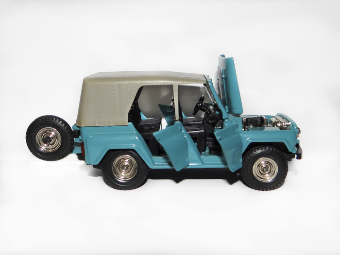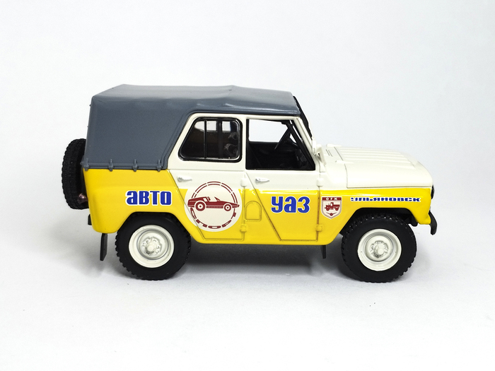 От базовых моделей УАЗ-469, которые выпускали: IST-models, Deagostini ("Автолегенды СССР" / "Автомобиль на службе") и Наш автопром эта модель отличается отсутствующими рамами со стёклами передних дверей, имитируя реальный прототип.
