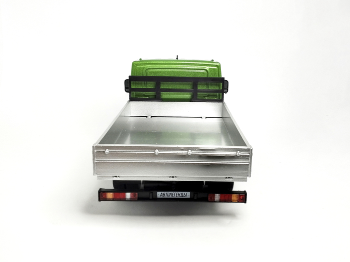 По детализации и качеству исполнения модель схожа с уже вышедшим ранее цельнометаллическим фургоном ГАЗель Next (выпуск №4). Мне очень понравился цвет, который выбрал производитель, - зелёный металлик. Модель смотрится ярко и вполне гармонично. Кстати, окрашена модель аккуратно, декали переведены без перекосов.