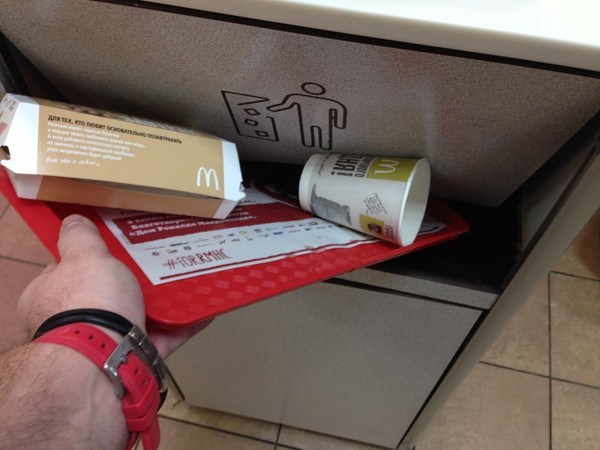 Часто бываю в ТЦ Европейский, хожу на фудкорт и наблюдаю картину, от которой отучал своих друзей. Мои друзья обычно после того как поедят на фудкортах, оставляли поднос с отходами на столе. После моих упреков и вопросов на подобии - "тяжело убрать за собой?", обычно мне отвечали мол здесь есть уборщики - не хочу у них работу отбирать...это их работа... Конечно после долгого промывания мозгов они выбрасывают теперь все за собой (по крайней мере со мной). Но...я хожу в Европейский и вижу эту картину и аж противно. Чаще всего фудкорт забит народом... Люди ходят с подносами в поисках свободного стола....и тут получается следующая картина... Кто то поел, элегантно подтирает свое оральное отверстие, грациозно встает одевается и уходит оставляя поднос. Вслед за этим подходит другой человек с подносом ставит свой поднос на этот стол (потому что других нет) и брезгливо уносит выкидывать чужой поднос. А затем скорее всего оставляет так же свой. Причем часто наблюдал картину,что когда человек начинается собираться,одевается к нему подходят и спрашивают - "вы уже все? мол можно за этот столик?" дав ответ "да" уходят не убрав свое дерь...мусор, свой мусор. И вот у меня в голове вопрос...реально так унизительно или сложно убрать за собой? Или это люди которые и в туалете оставляют за собой след...что бы смыл кто то другой... Вообщем люди... не будте хрю хрю.
