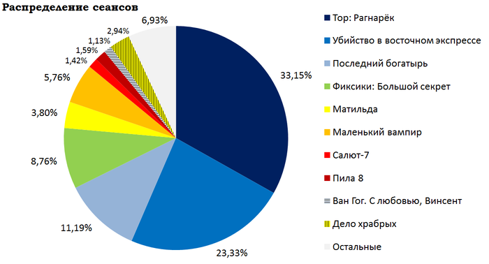 Кассовые сборы российского кинопроката и распределение сеансов за прошедший уик-энд (9 - 12 ноября)