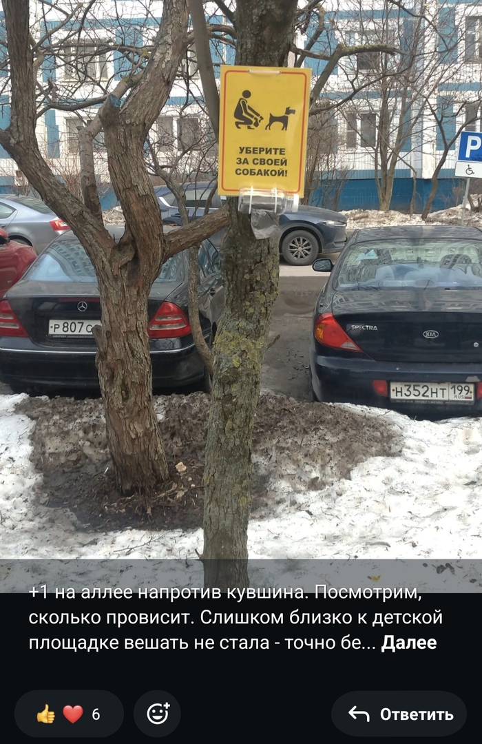 У нас в районе есть собачий чат. И уже с год как, наверное, владельцы сами вешают в районе таблички и пакеты.