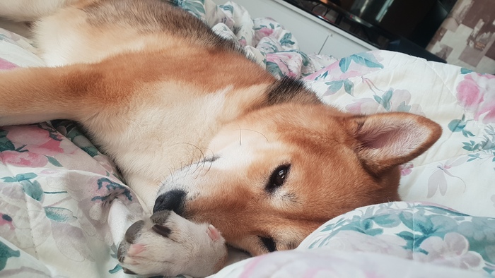 Ранее я писала, что пес у нас ленивый, но правда это лишь от части. Такой он только дома, в помещениях, ест и спит, и изредка смотрит на тебя жалобными глазами как бы говоря - дай мне то, что ты там жрешь. Готов целыми днями и вечерами уютно валяться в обнимку на кровати, когда читаешь книгу или смотришь тв. На улице по настроению, иногда еле ноги волочит, иногда шило в ж.