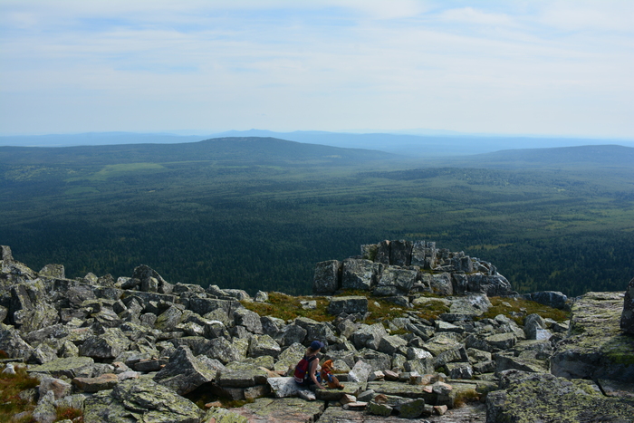 Поднявшись на вершину открывается вид на расходящийся в стороны хребет Нургуш, одной частью заканчивающийся у озера Зюраткуль, а другой уходящий к Тюлюку и там плавно перетекающий в хребет Зигальгу. За долиной Тюлюка виднеется Иремельский Массив, а на переднем плане небольшая вершина это Малый Уван. Будет возможность - взойдите на него. Там есть на что посмотреть.