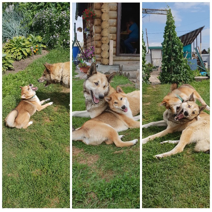 Очень любит собак, есть несколько прям любимых. Один из них пес родителей на даче Югор - западно-сибирская лайка, охотничья. Сначала думали загрызет малявку, но все устаканилось. Теперь как только подъезжаем к воротам, визги счастья стоят по обе стороны забора.