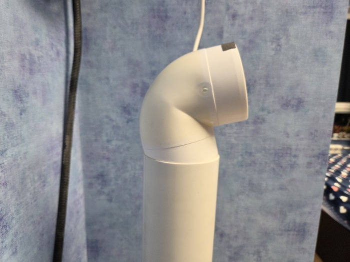 Наверху паровой трубы нужно установить угол, но если его поставить ровно под 90 градусов на его нижней части образуется конденсат который капает вниз, чтобы этого избежать надо установить его с перекосом: