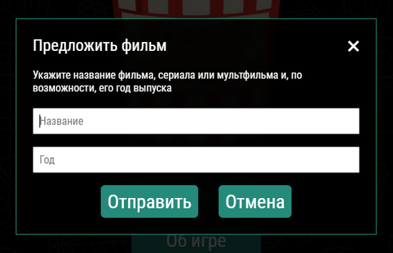 Добавил в игру возможность предложить свой фильм. Кнопка расположена в самом низу страницы рядом с общим количеством фильмов.