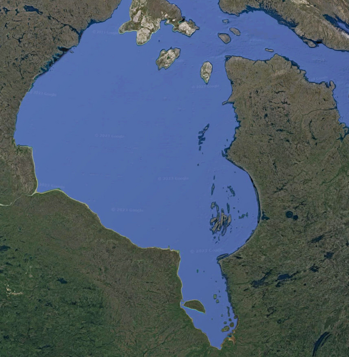 Правильный ответ: 1. Гудзонов залив — часть Северного Ледовитого океана, примыкающая также к Атлантическому океану. Фактически представляет собой внутреннее море, окружённое с востока, юга и запада землями канадских провинций Квебек, Онтарио, Манитоба, а также территорией Нунавут.