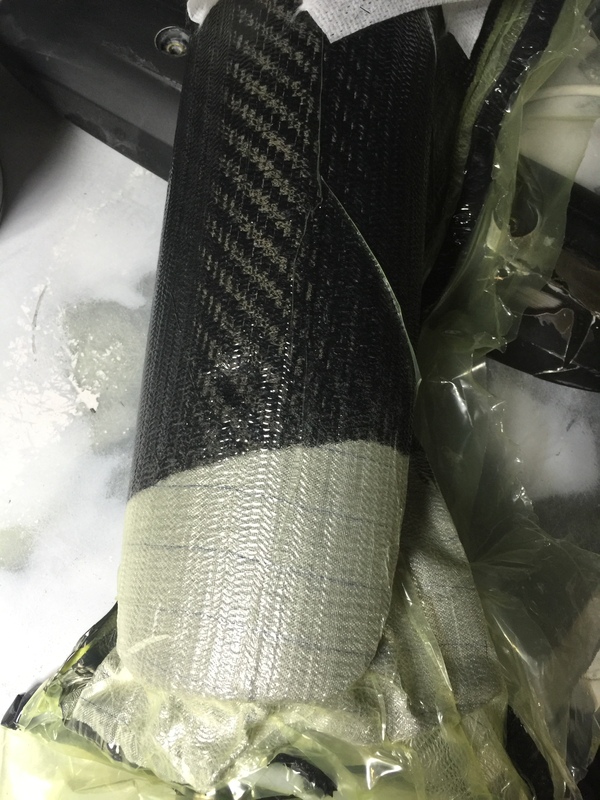 На предыдущем фото видно, как отходят выкройки. Сколько клея не нанести, пока уложишь последний слой, обязательно сколько-то выкроек уйдет. А это напрямую влияет на качество получаемой детали. Чтобы этого не произошло, во время пропитки вокруг детали собирается вакуумный мешок - хитрая слоистая конструкция для подачи и распределения эпоксидной смолы, откачки воздуха, создания надежного прижима.