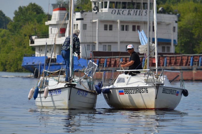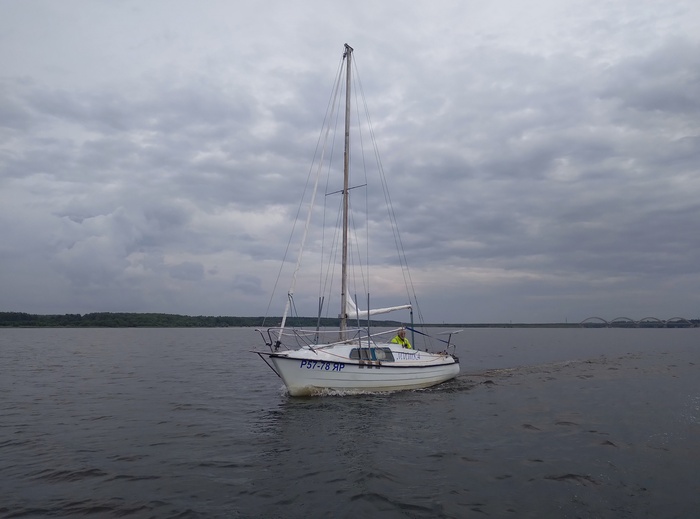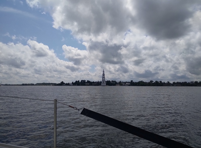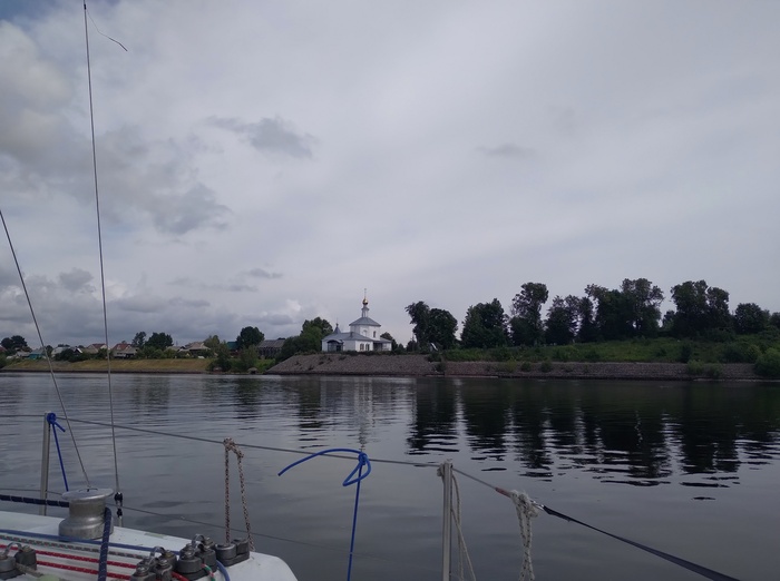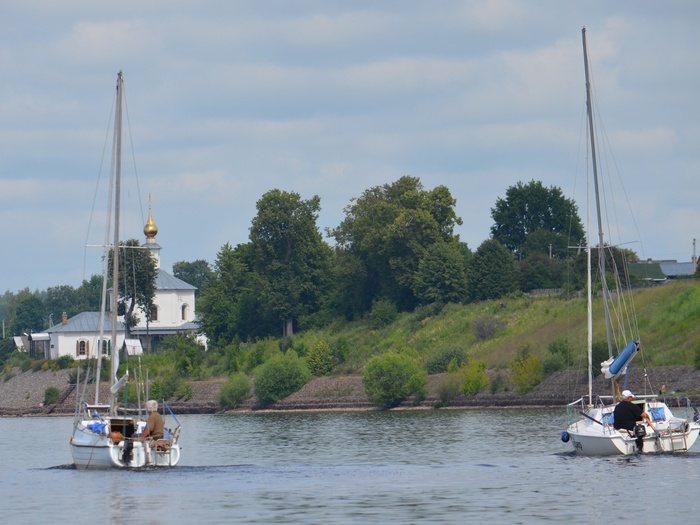На выходе из подходного канала шлюза неожиданно встречаем друзей на яхте «Герда» из Дубны. У них умер аккумулятор, вот и пришли в Углич за новым. Пообщавшись, идем дальше.