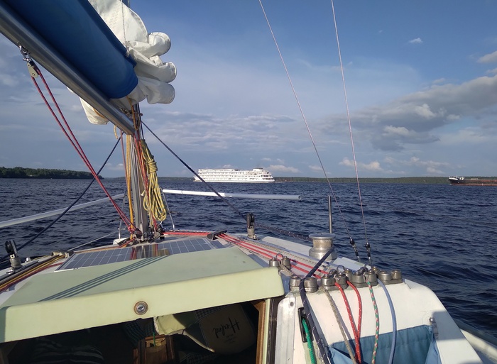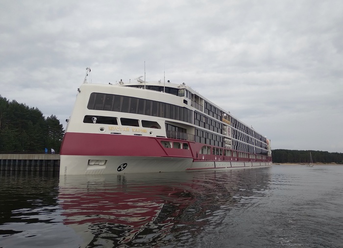 В Коприно зашел на заправку. На выходе из бухты стоит здоровенный новейший круизник «Мустай Карим». Впечатление неоднозначное - глухо застекленные палубы и утюгообразный силуэт, ну хоть такие строят, и то хорошо.