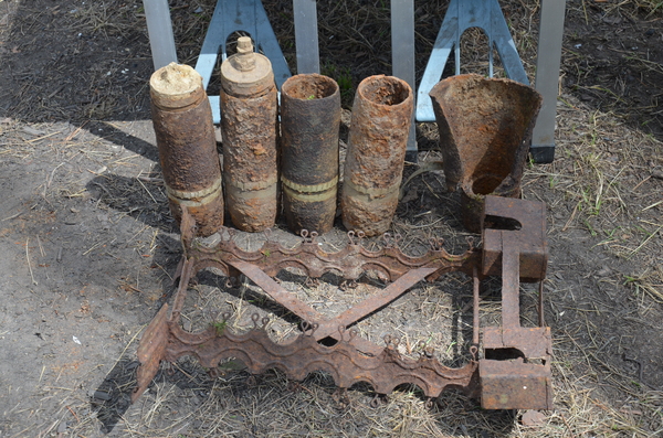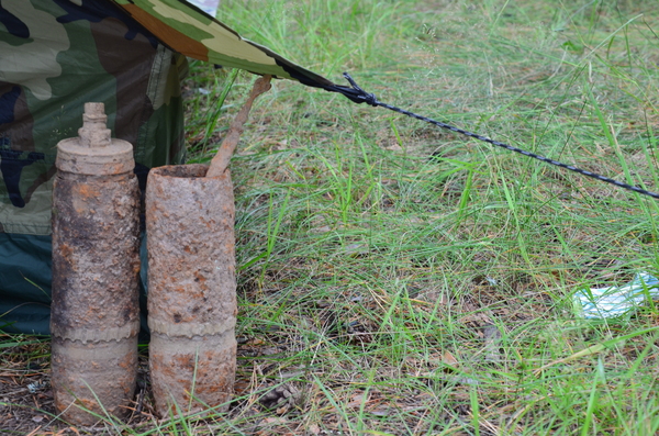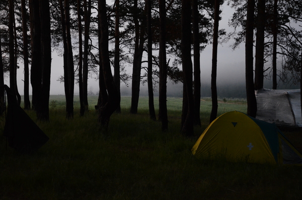 Именно в том месте где мы стоим лагерем и был прорыв основных сил красноармейцев. Немецкие пулемётные гнёзда располагались по всей длине прорыва, таким образом наши бойцы выходя из Шпырёвского леса - что находится на другой стороне Угры, должны были сперва форсировать реку которая была напичкана колючей проволокой, а затем попасть под ураганный огонь немецких пулемётов и миномётов. Всё поле перед Угрой усыпано шрапнелью, а пулемётные гнёзда по пояс в стреляных гильзах, интересный момент что в некоторых из точек гильзы раскиданы по кругу таким образом можно сделать вывод что кому то всё таки удалось прорваться (ну или немцы сошли сума и стреляли по кругу). Много трассирующих гильз значит прорыв длился и ночью тоже. Очень много французских патронов давших осечку, и повторюсь очень - очень много шрапнели. Жутко, особенно когда сидишь ночью часа три и стелиться туман, оглушающая тишина и такое впечатление что вот сейчас из леса побегут герои, к 4 утра лагерь заволакивает "молоком" невидно ничего, и только костёр как то разгоняет туман.
