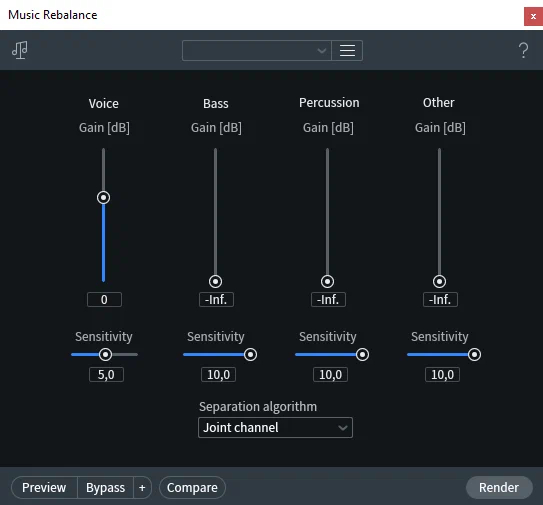 Далее жмём "Preview", и прослушиваем аудио. Если вам что-то не нравится, можете поменять параметр "separation algorithm".