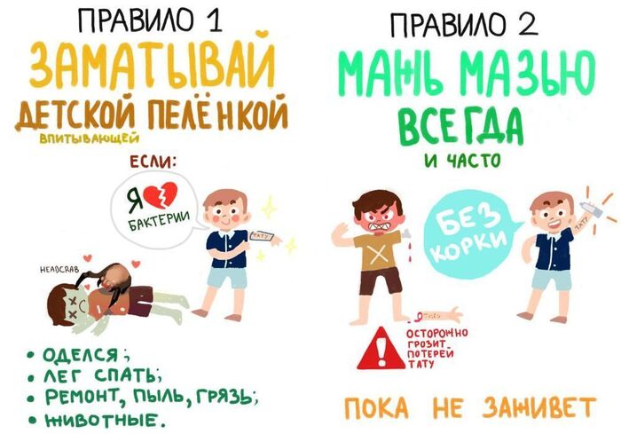 Самое главное - не паниковать, не гуглить, как удалить тату в домашних условиях и следовать всем рекомендациям тату-мастера или мастера перманентного макияжа по заживлению.