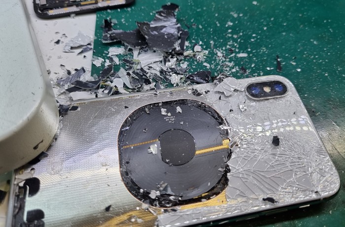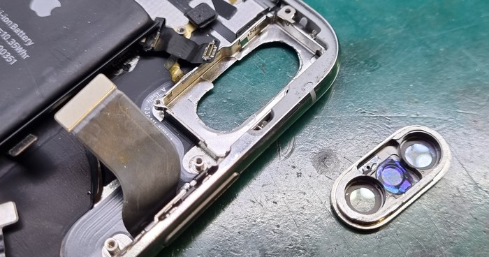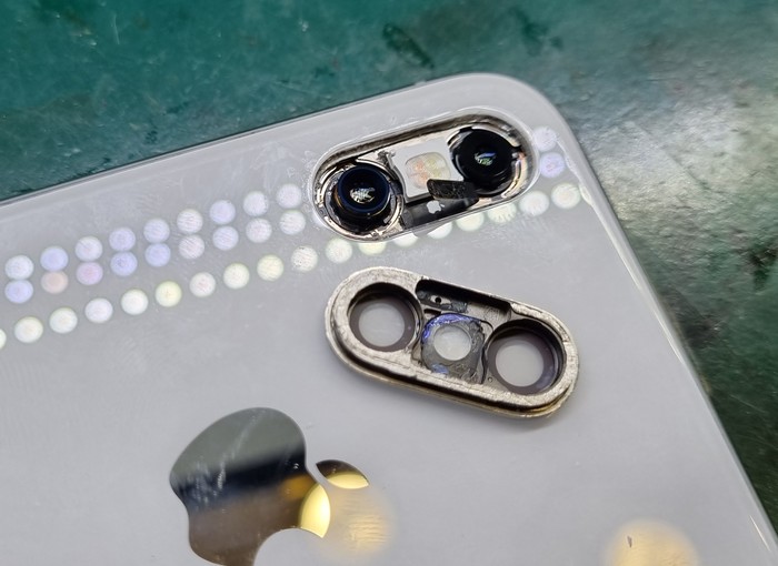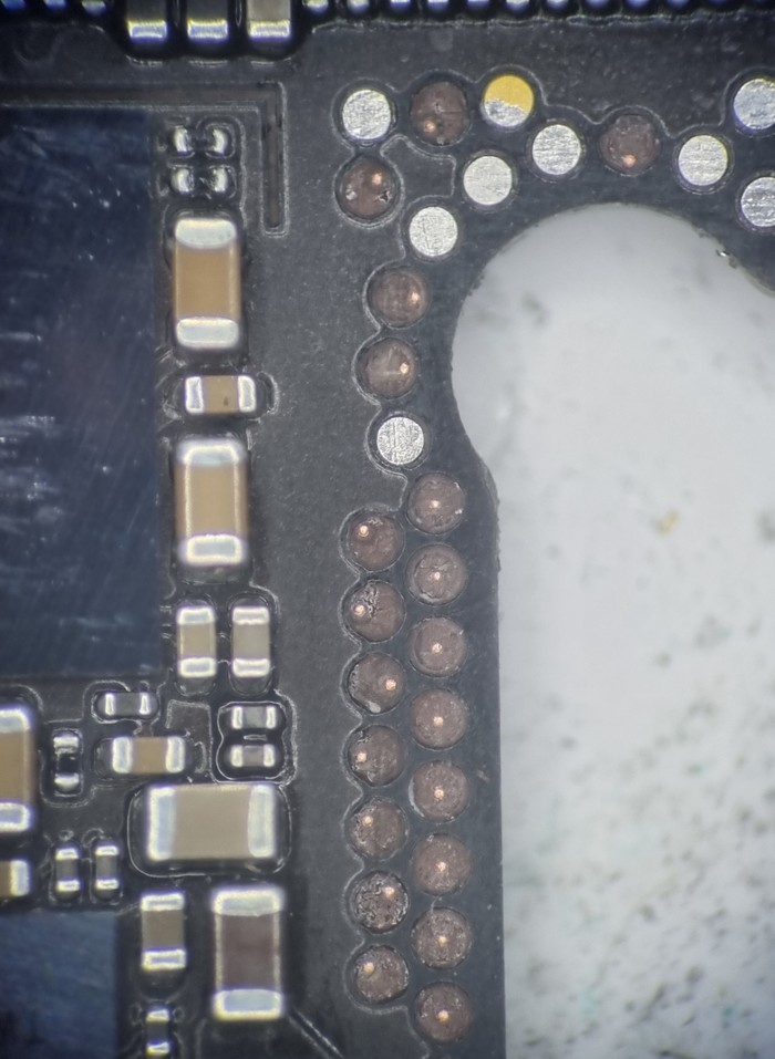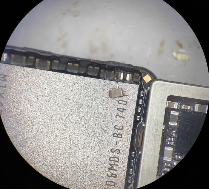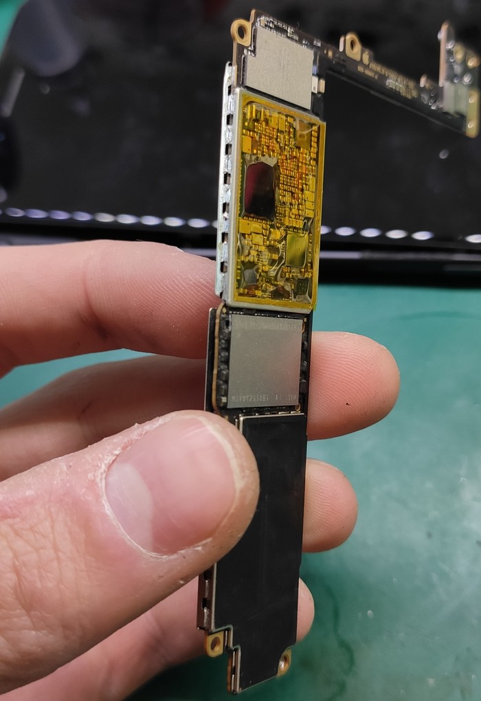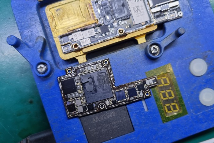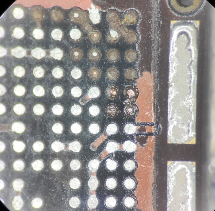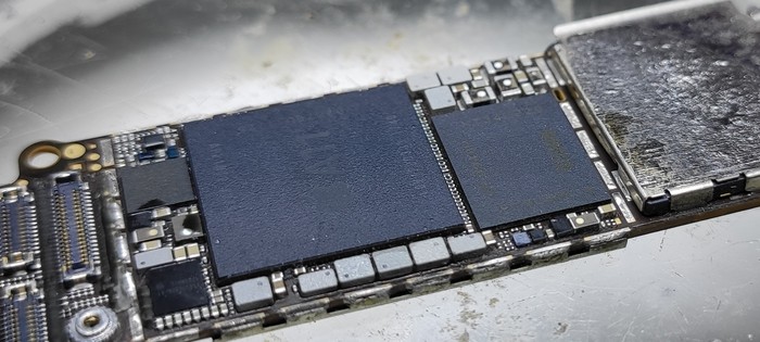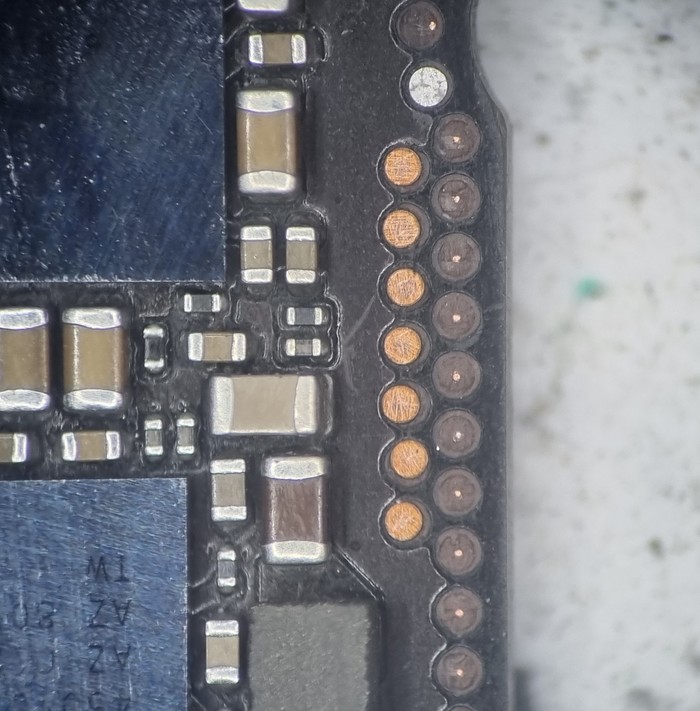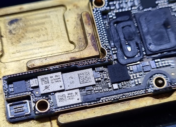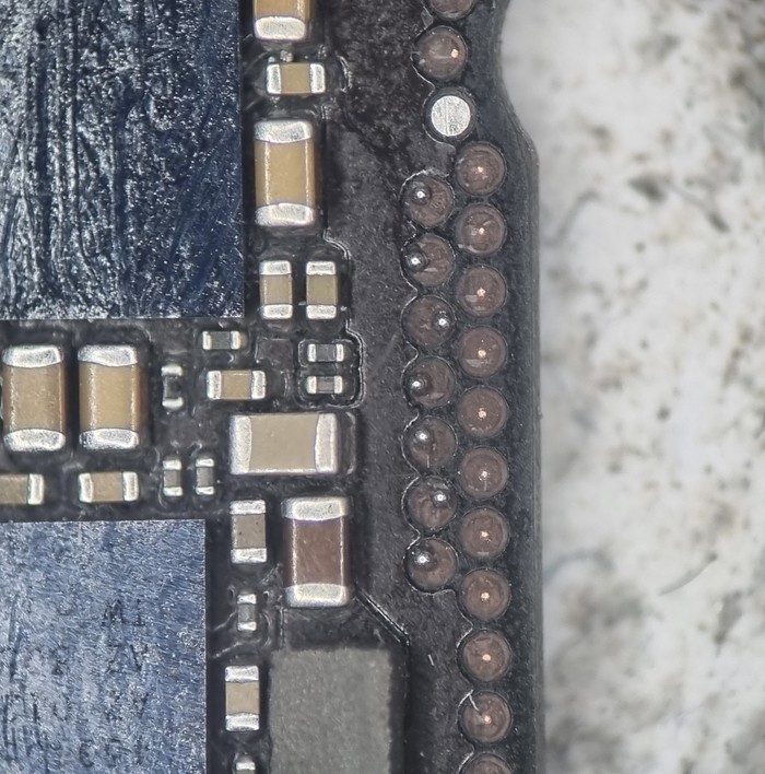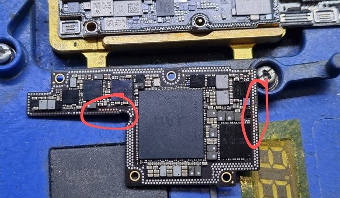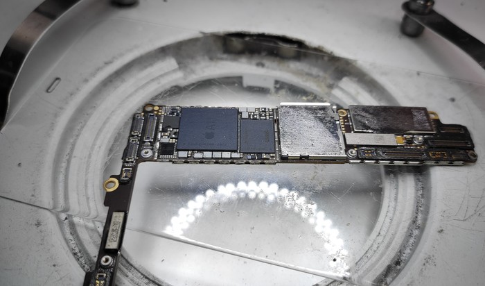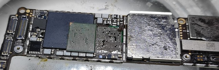 Казалось бы, да, ремонт закончен, доделать заднюю крышку и отправить обратно, но... Такие удары не проходят бесследно и в случаях 7/8 серий отбивается модем рядом с сим коннектором.