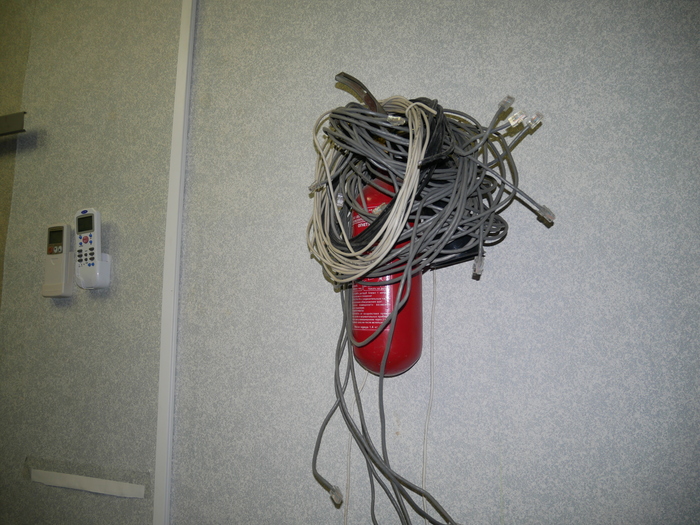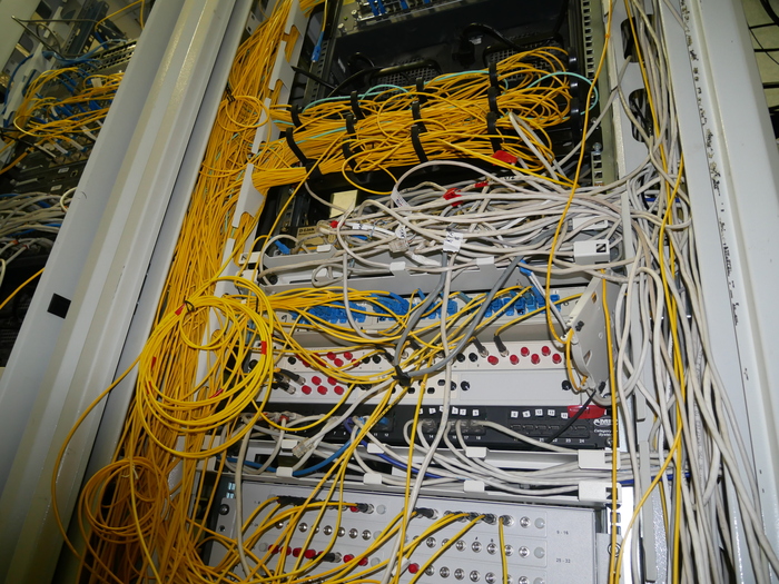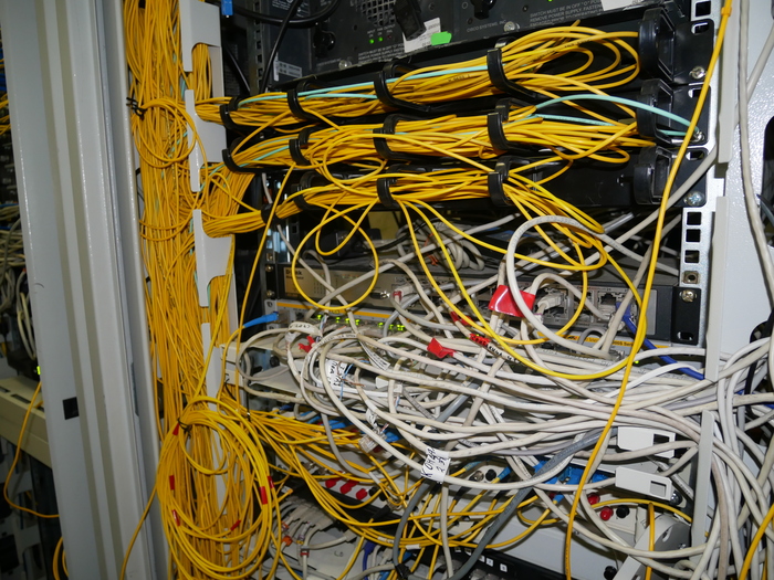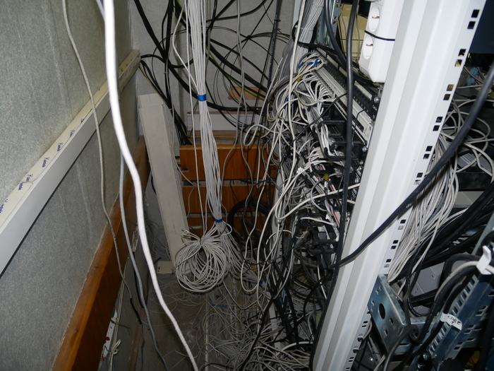 Зашли мы тут значит в гости к кое-какому провайдеру поглядеть на внутренности его сети. А там на узле связи увидели вот такой вот "творческий беспорядок". Вполне прилично, конечно, и вполне рабочая атмосфера. Жаль только кондиционер включать нельзя.