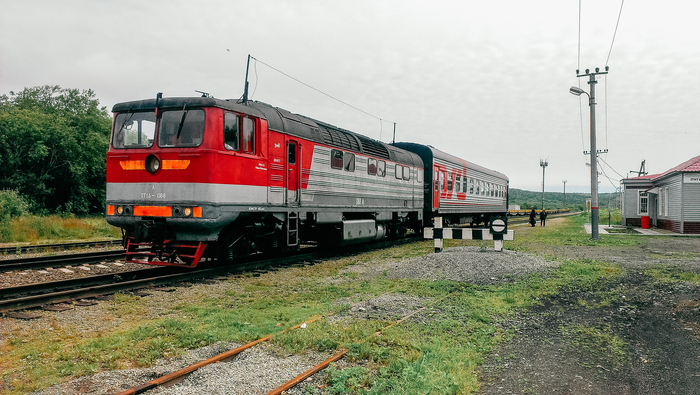 Наш маршрут был от Южно-Сахалинска до Поронайска на электричке, состоящей из тепловоза и одного вагона