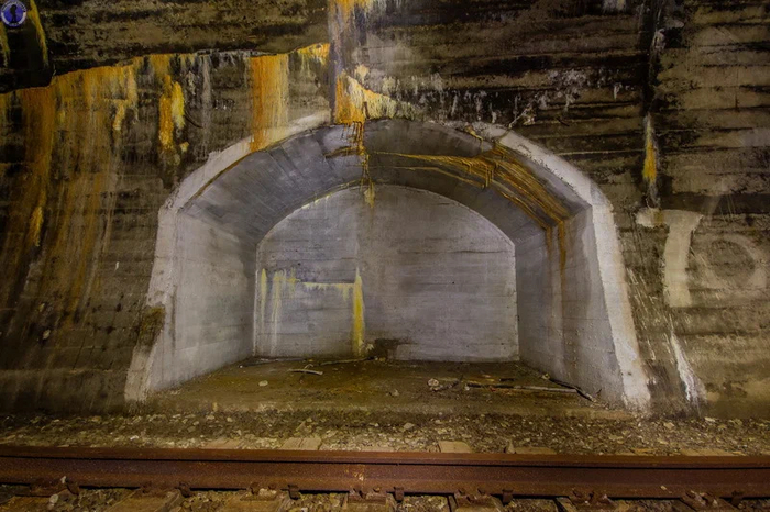 Вдоль стен обустроены ниши для укрытия работников железной дороги от проходящих составов.
