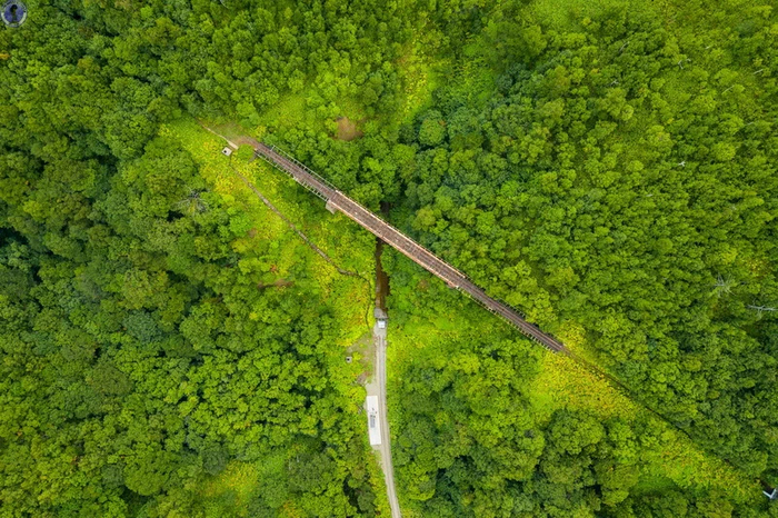 После прохождения спирали "Такарадай" с комплексом тоннелей и мостов, мы движемся дальше по заросшему узкоколейному пути.