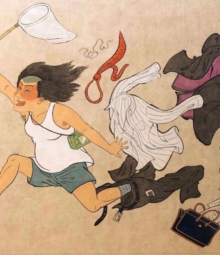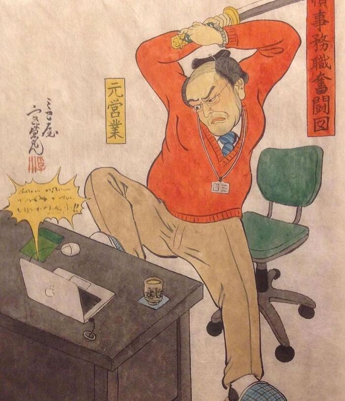 Когда мы говорим об искусстве гравюр укиё-э, привычно видеть творения известных мастеров, таких как Хокусай или Хиросигэ. Но что, если я скажу вам, что есть по-настоящему современный мастер. Сисаму Ивасэ не побоялся взять традиционный формат и приправить его хорошей щепоткой иронии над действительно забавной кастой людей – сарариманами.