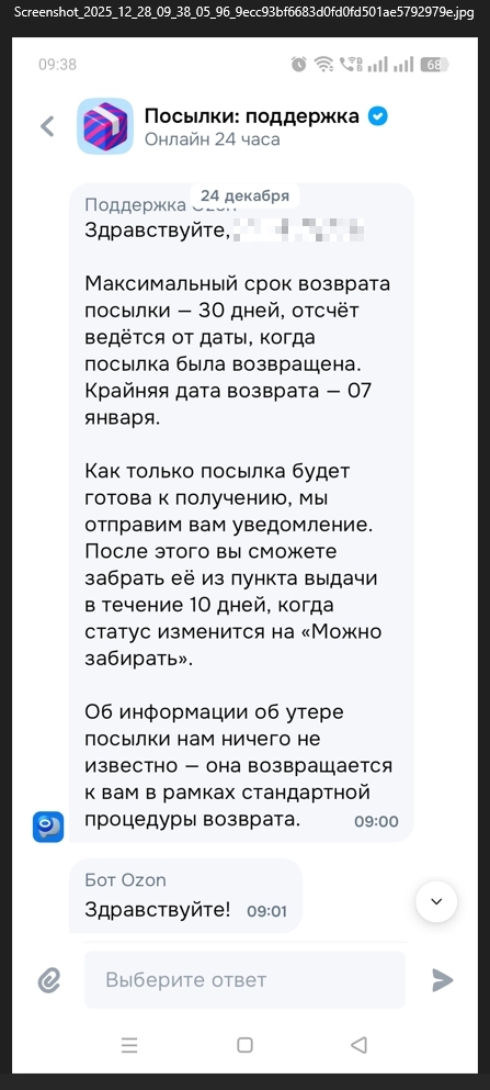 @Ozon, И возможно, это самое удачное время чтобы произошло чудо в канун Нового года и посылка вернулась ...