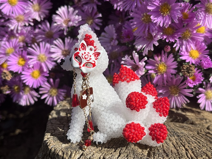 Материалы: чешский бисер, подвеска маска, внутри игрушки наполнитель, леска. Ручная работа