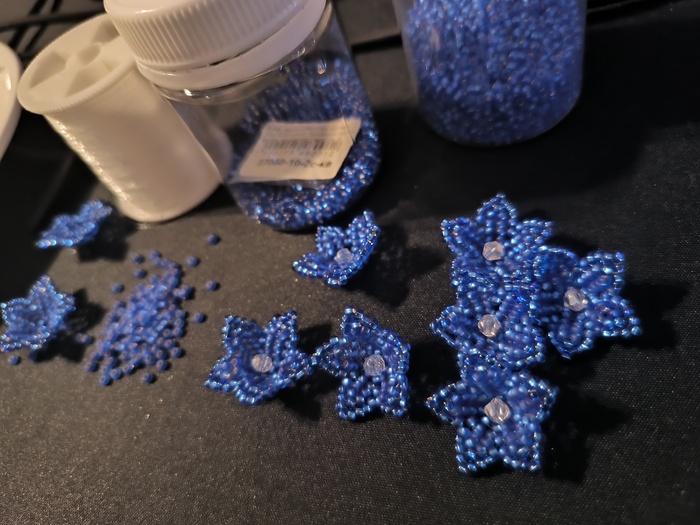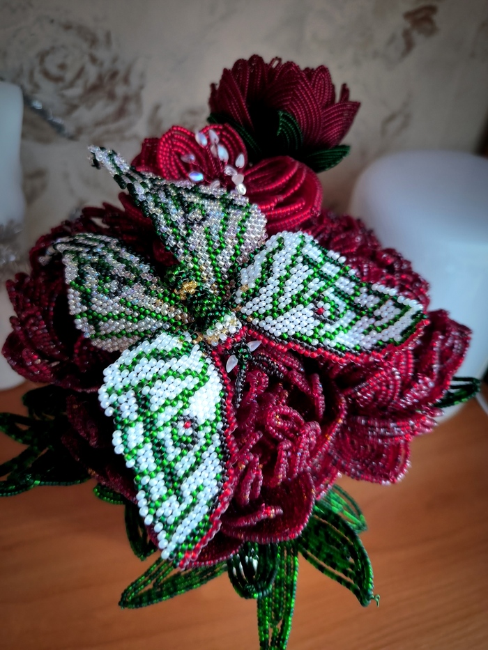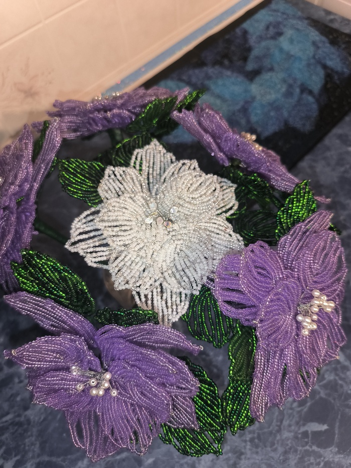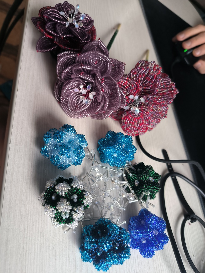 Потом пошла на занятия по бисероплетению, хожу больше года именно с них началась моя любовь к бисеру, нужно сказать отдельное спасибо преподавателю Тане, она во всём поможет и пальцем тыкнет)