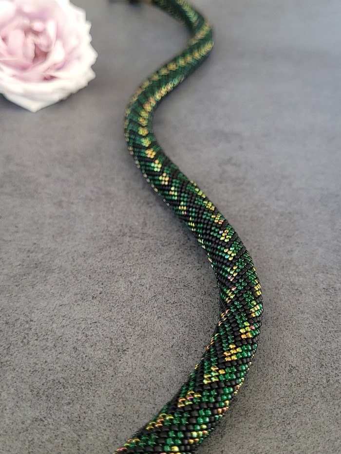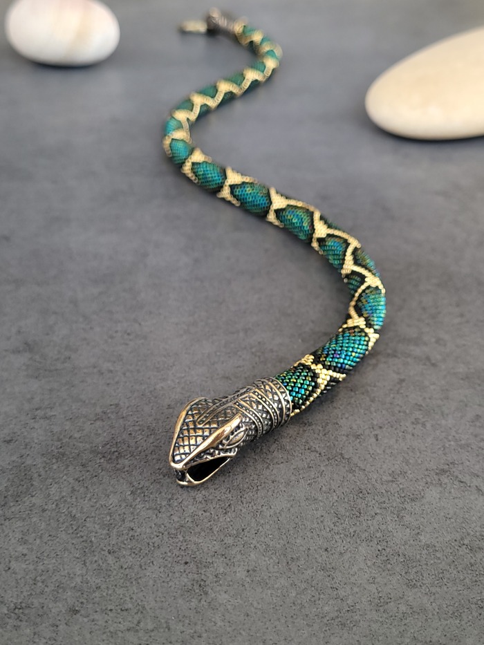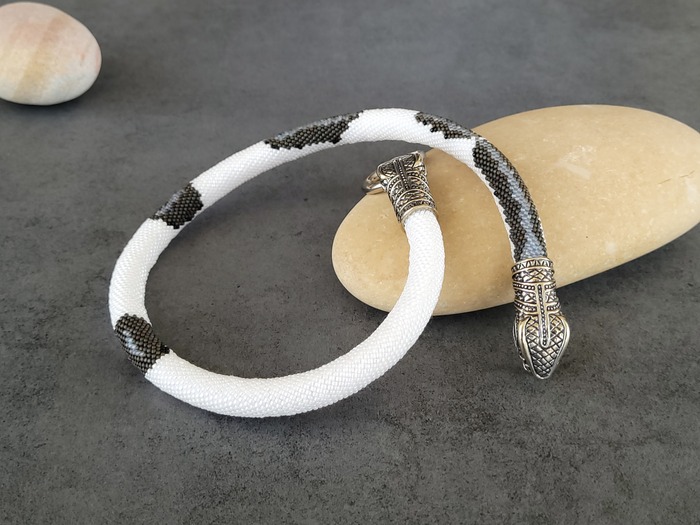 В основном я делаю колье по фото или картинке змеи, как, например, этот серый питончик, но иногда хочется чего-то необычного.
