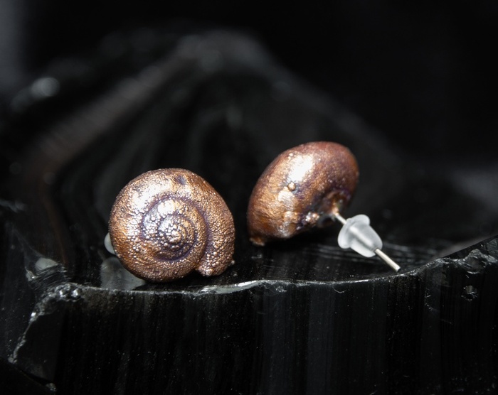 Покрытые медью панцири можно оставить как есть, превратив их в серьги-гвоздики, например.
