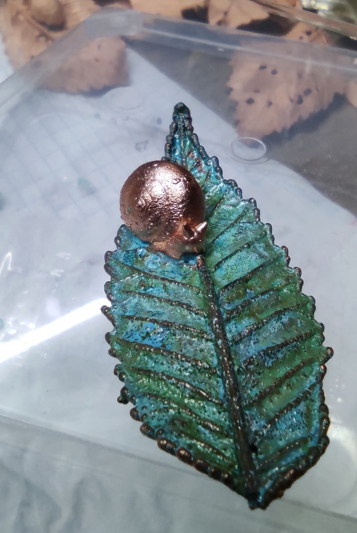 В один из осенних дней в магазине ручной работы я увидел металлические медные предметы. Это был лист смородины с бусинами, желудь, физалис, лист клена.