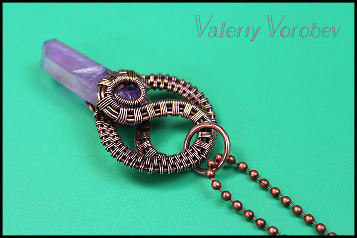 Кулон ручной работы из проволоки и камня