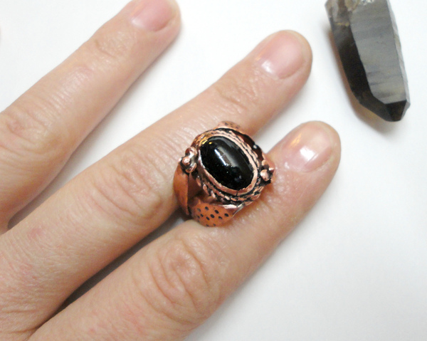 27 faiter Рукодельники Кольцо "Античность" 8 лет назад Вот такое кольцо сделала на заказ по фото. Точного соответствия не требовалось, просили "похожее, но другое". Делала в основном из листовой меди, камень - агат. Второе фото - "оригинал", на который оглядывалась. И да, мне нужен флахштихель(( Показать полностью 5 [моё] Кольцо Фото Ручная работа Своими руками Рукоделие Украшения из меди Длиннопост