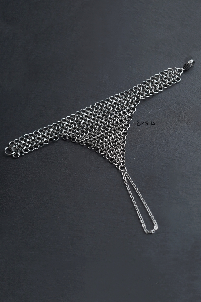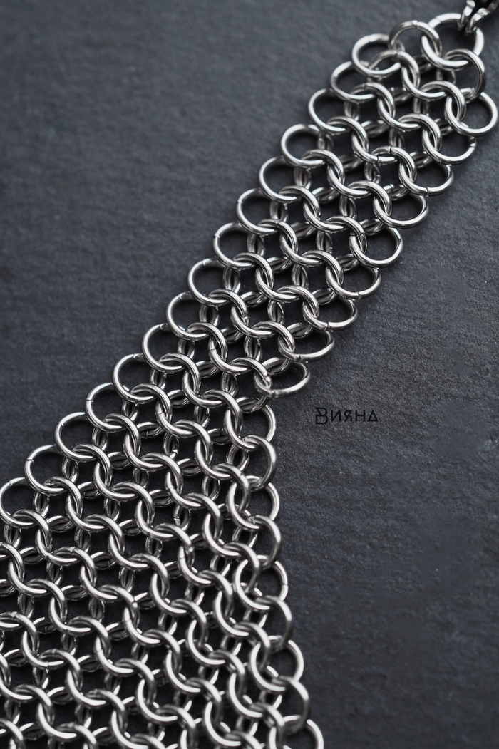 Нержавеющая сталь, кольчужное плетение - ручная работа. Каждое звено (колечко) вплетено вручную.