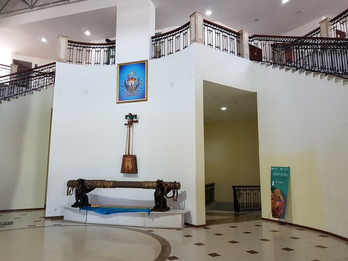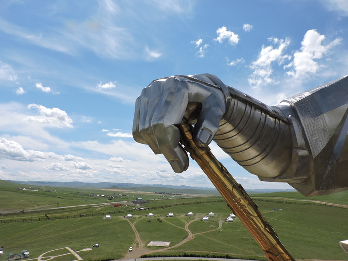 В здании-постаменте статуи есть музей, где представлены самые большие в мире сапог и плётка. Есть кафе (не работало) и сувенирный магазин, где продавец говорит по-английски лучше всех, с кем довелось встретиться за эти дни в Монголии)