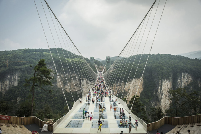 Стеклянный мост Чжанцзяцзе — ещё одна местная достопримечательность. Мост имеет стеклянную дно и прозрачен. Это самый длинный и самый высокий стеклянный мост в мире. Мост был открыт для публики 20 августа 2016 года, имеет длину 430 метров в длину и 6 метров в ширину и подвешен на высоте 260 метров над землей. Мост расположен в каньоне между двумя горными утесами в Национальном лесном парке Чжанцзяцзе