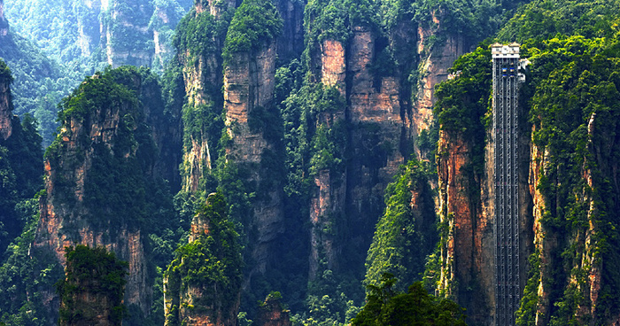 Лифт Байлун или Лифт Ста Драконов – это самый высокий внешний лифт в мире, поднимает туристов на вершину горы в 360 м.