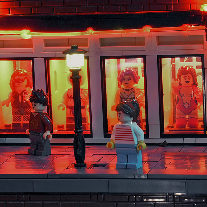 Несколько лет назад меня очень впечатлил Амстердам — город-праздник, город свободы, город-фестиваль. В интернетах есть много лего-домов из этого города, сделанные фанатами. В Лего-ленде есть целая улица с каналами, но нигде я не увидел квартала Красных фонарей. Меня очень удивило, что сообщество AFOL («adult fans of Lego») обошло стороной такое колоритное место. Я решил исправить это досадное недоразумение.