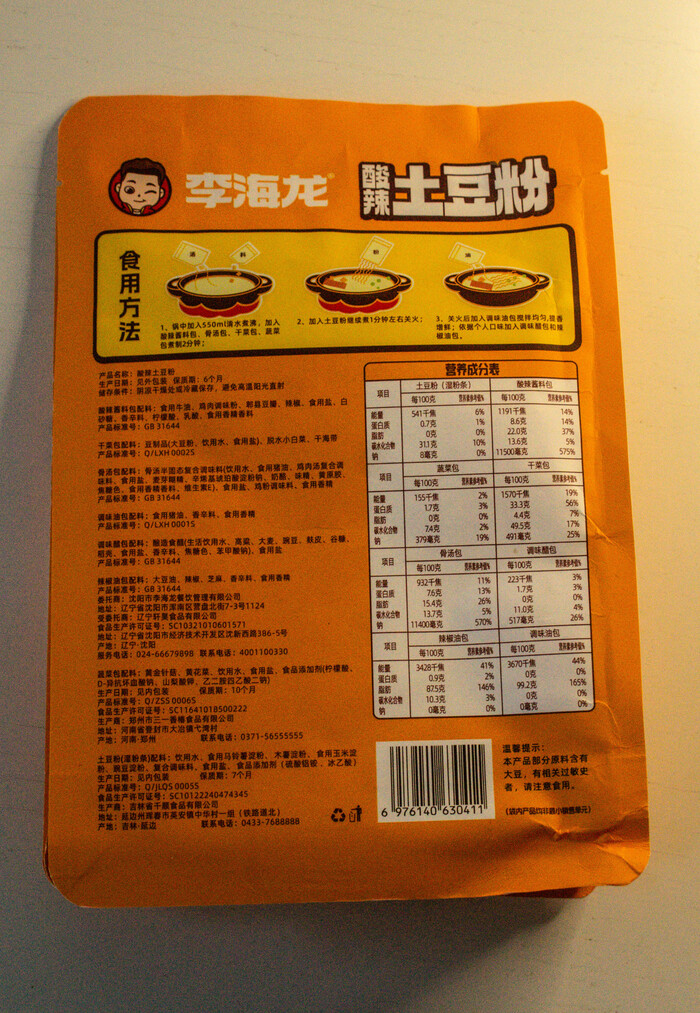 Недавно попалась в руки мне этот пакет, увесистый. Немного переведя текст, понял что в руках у меня средне - кисло - острый малатан с лапшой из картофельной муки. Много расписывать я не умею и вообще меня берут сомнения что, кто то читает полностью весь текст. Так что общий вид пакета: