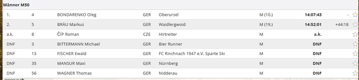 Кстати, результат: в возрастной категории М50: из всех финишировавших я - предпоследний. А учитывая, что из 7и человек в категории финишировало только двое, то соответственно - “чемпион” ). Остальные - сошли или не вписались в лимиты. “Элитная гонка”, предупреждали ж. Размышляю теперь, на какой гонорар соглашаться, если завтра придет приглашение в сборную.