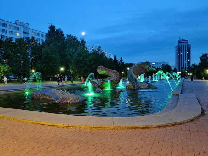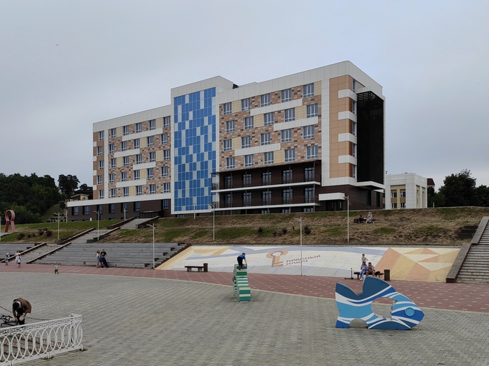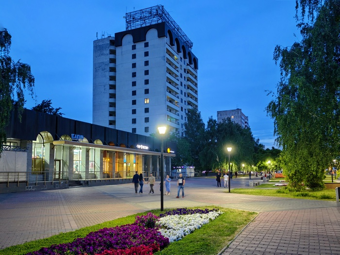 К вечеру приезжаем в Набережные Челны. Его тоже построили в советское время, градообразующее предприятие - завод КАМАЗ. Город немаленький, размером с Ульяновск, однако он полностью состоит из микрорайонов с высотками - здесь вообще нет центра. Тут есть центральная площадь между многоэтажек, и какие-то попытки обустроить пешеходные зоны, но всё это крайне похоже на наш ульяновский Новый город - правда, в отличие от последнего, здесь ухоженные улицы и отличные дороги.