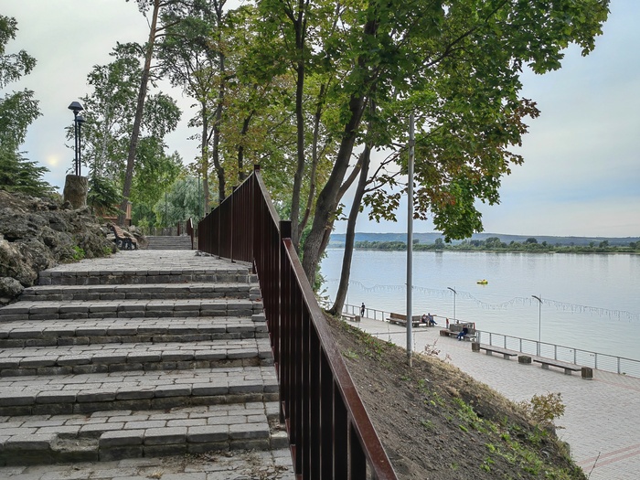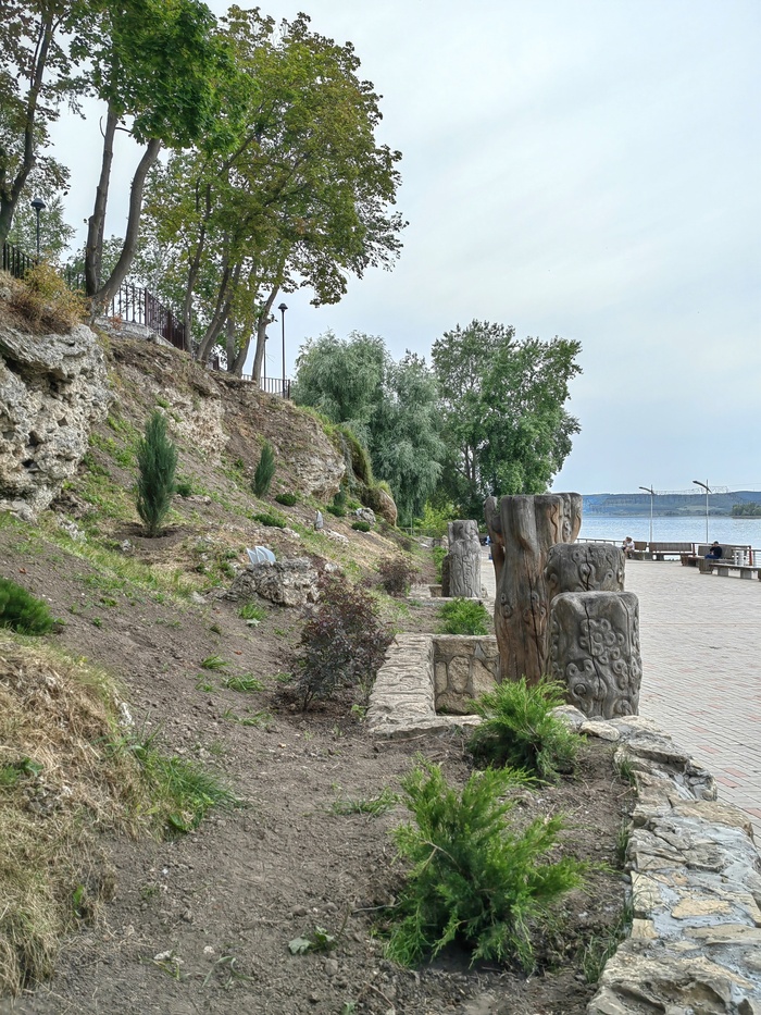 Далее дорога идёт в Нижнекамск. По своей сути, это советский промышленный город вроде Балаково, но по благоустройству он больше напоминает Казань. Здесь отличные дороги, современные прогулочные зоны, новые трамваи (сам факт наличия трамвая в небольших городах нас перестал удивлять во время этой поездки). Короче, город очень сильно отличается в лучшую сторону от того же Балаково или Димитровграда. Например, вот набережная в районе Красный Ключ: