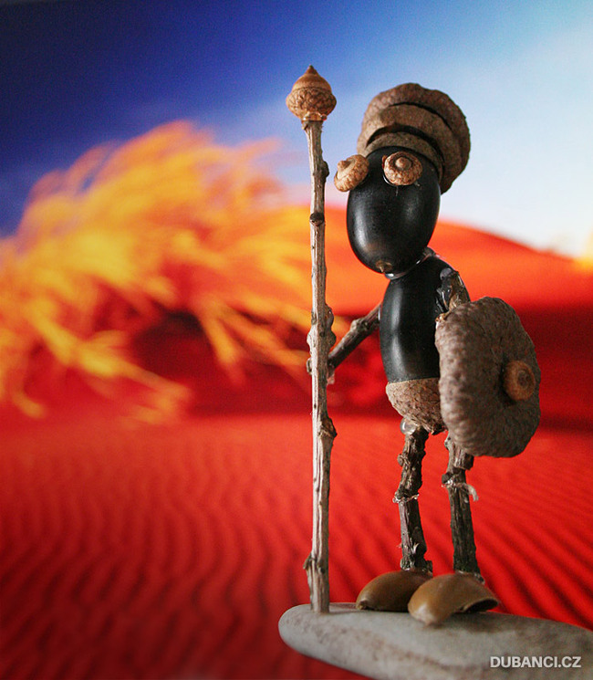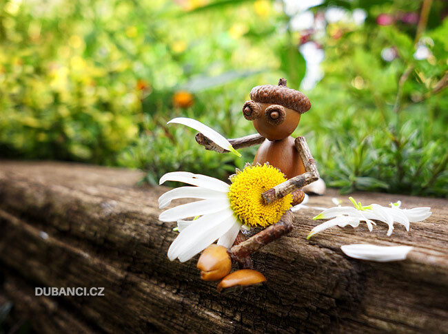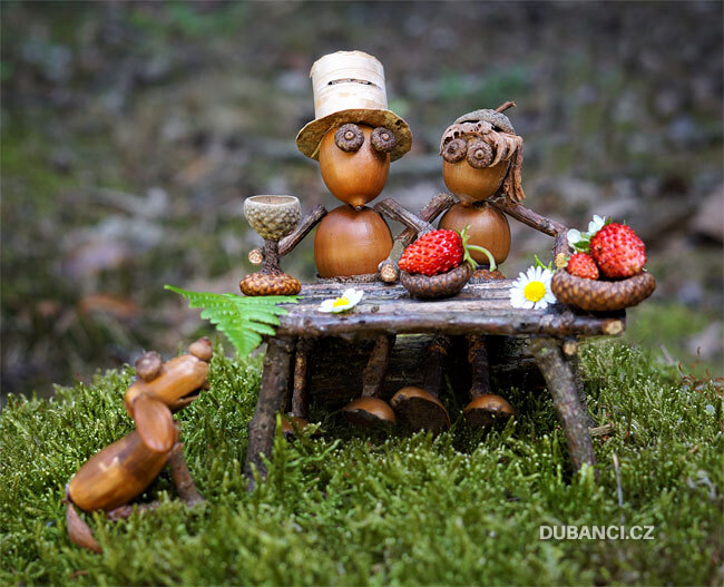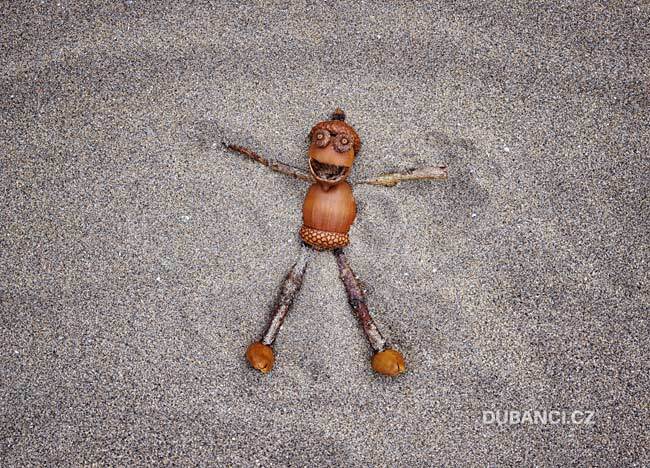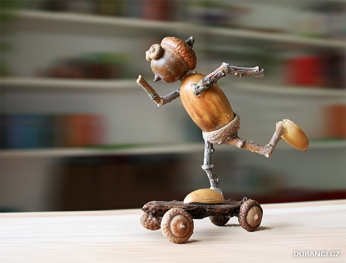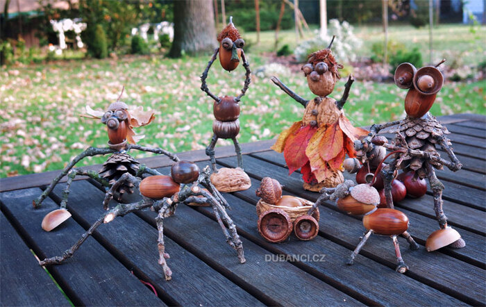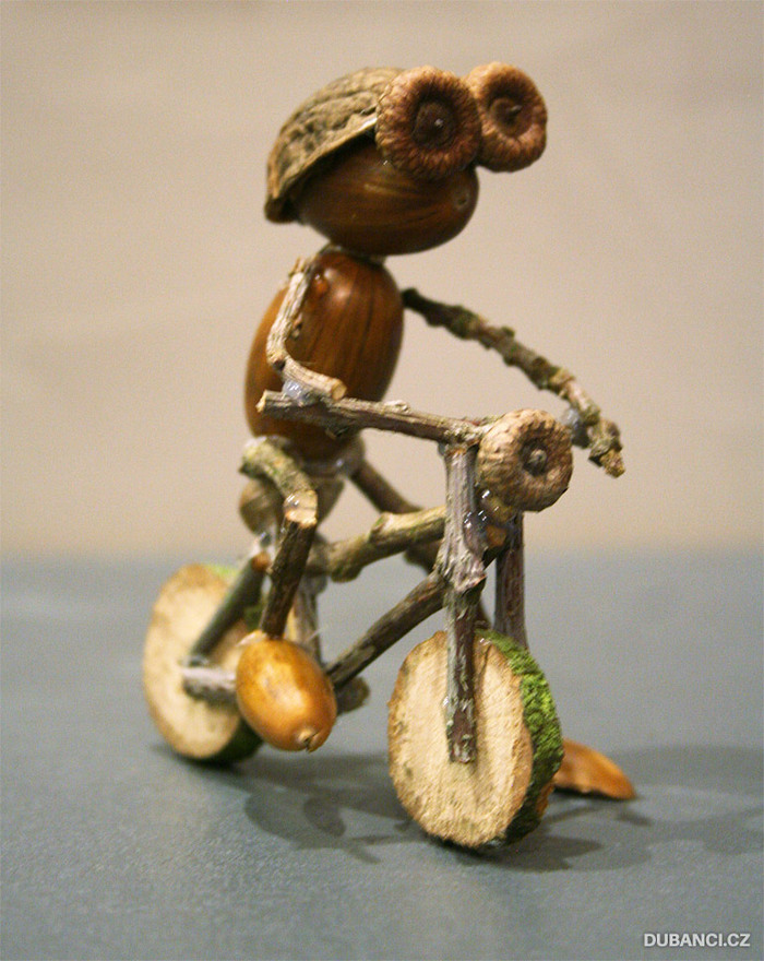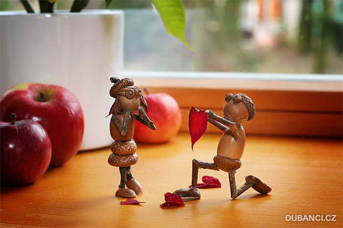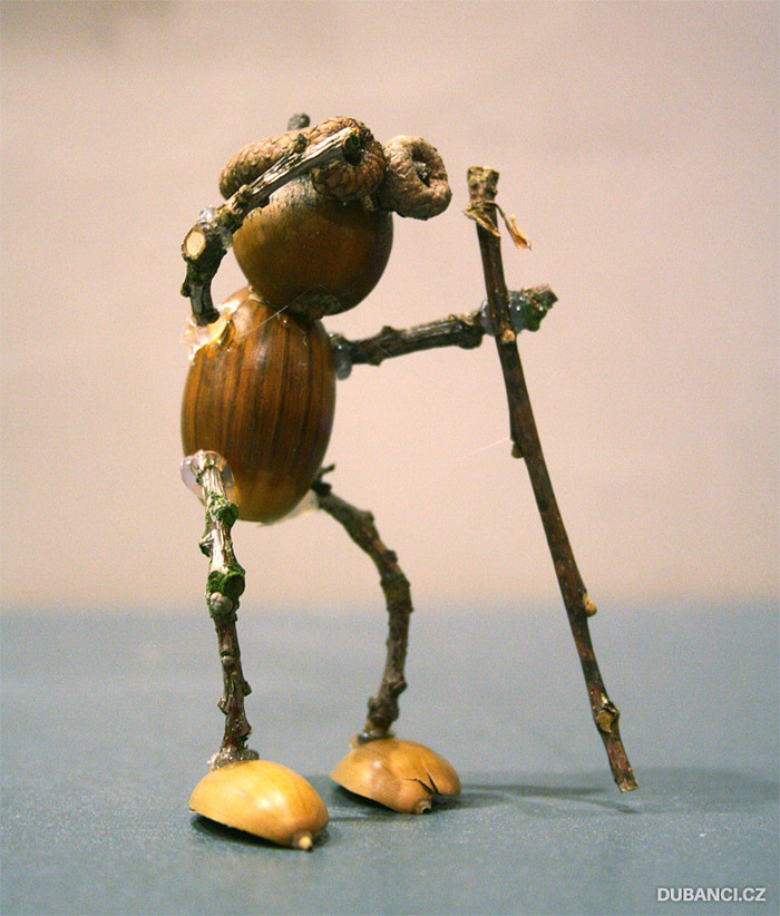 Используя клеевой пистолет, я создал много разных зверушек и смешных человечков. Сперва я использовал шишки, каштаны, ореховые скорлупки, но мастерить из желудей мне понравились больше всего.