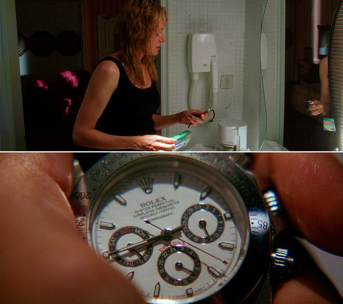 2. У Тарантино была особая причина для того, чтобы использовать поддельной Rolex потому что отношения Билла и Биатрикс (Ума Турман) были основаны на лжи, прежде чем он выстрелил в нее? ... Ммм !.... Может быть, в этом слишком много смысла ... Может быть, они бы просто хотели сохранить деньги студии!