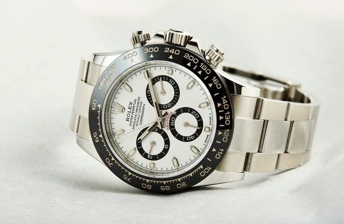 Во-первых, на часах Турман тахометр расположен вверх ногами. Во-вторых, дополнительные циферблаты показывают число, день недели и второй часовой формат (24 часа), тогда как в настоящих Rolex эти циферблаты - с малой секундной стрелкой и двумя счетчиками (30-минутным и 12-часовым). Ниже на первом кадре - подделка в фильме, второй снимок - реальные "ролексы".