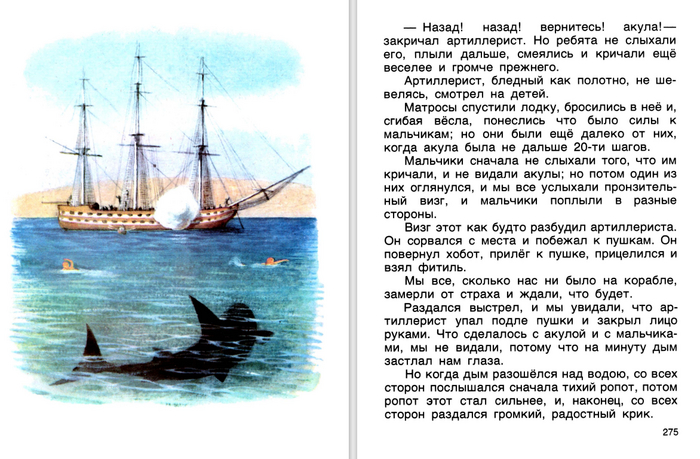 Книга для чтения Горецкого (1982) - вторая из трех страниц текста рассказа Толстого "Акула"