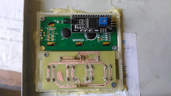 Вот плата кнопок и дисплей с ней же в одном блоке, распечатанном на 3Д принтере (наверное зря прозрачный пластик, но он уже был заправлен в принтер, да и светодиоды хорошо просвечивают).